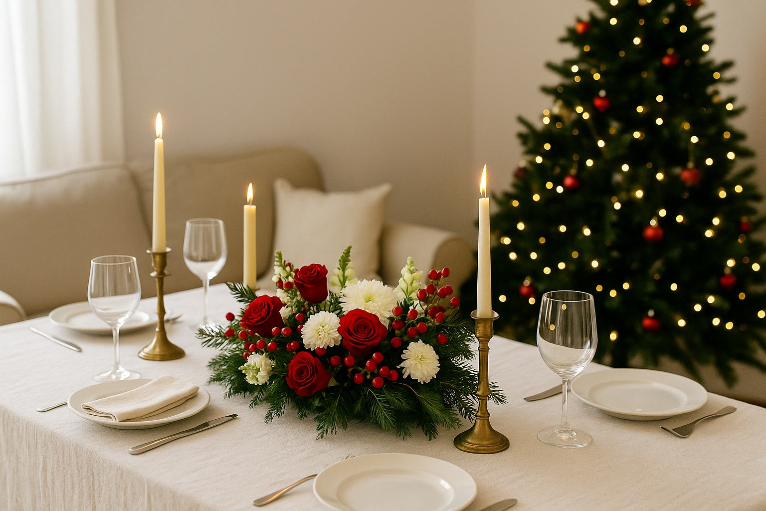 Découvrez la magie de Noël avec nos arrangements floraux, paniers cadeaux et créations festives.