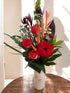 Fleurs principales : Roses rouges, gerberas, oiseaux de paradis, fleurs sauvages.