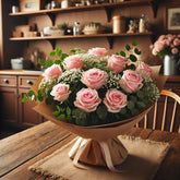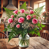 Bouquet de Roses Roses et Gypsophile - Élégance Champêtre