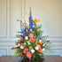 Travaillée en hauteur, cette création florale offre une présence forte et élégante, idéale pour souligner un hommage, transmettre un message marquant ou apporter une touche de couleur expressive lors d’un moment significatif. Sa palette lumineuse symbolise l’énergie, l’espoir et la célébration de la vie.